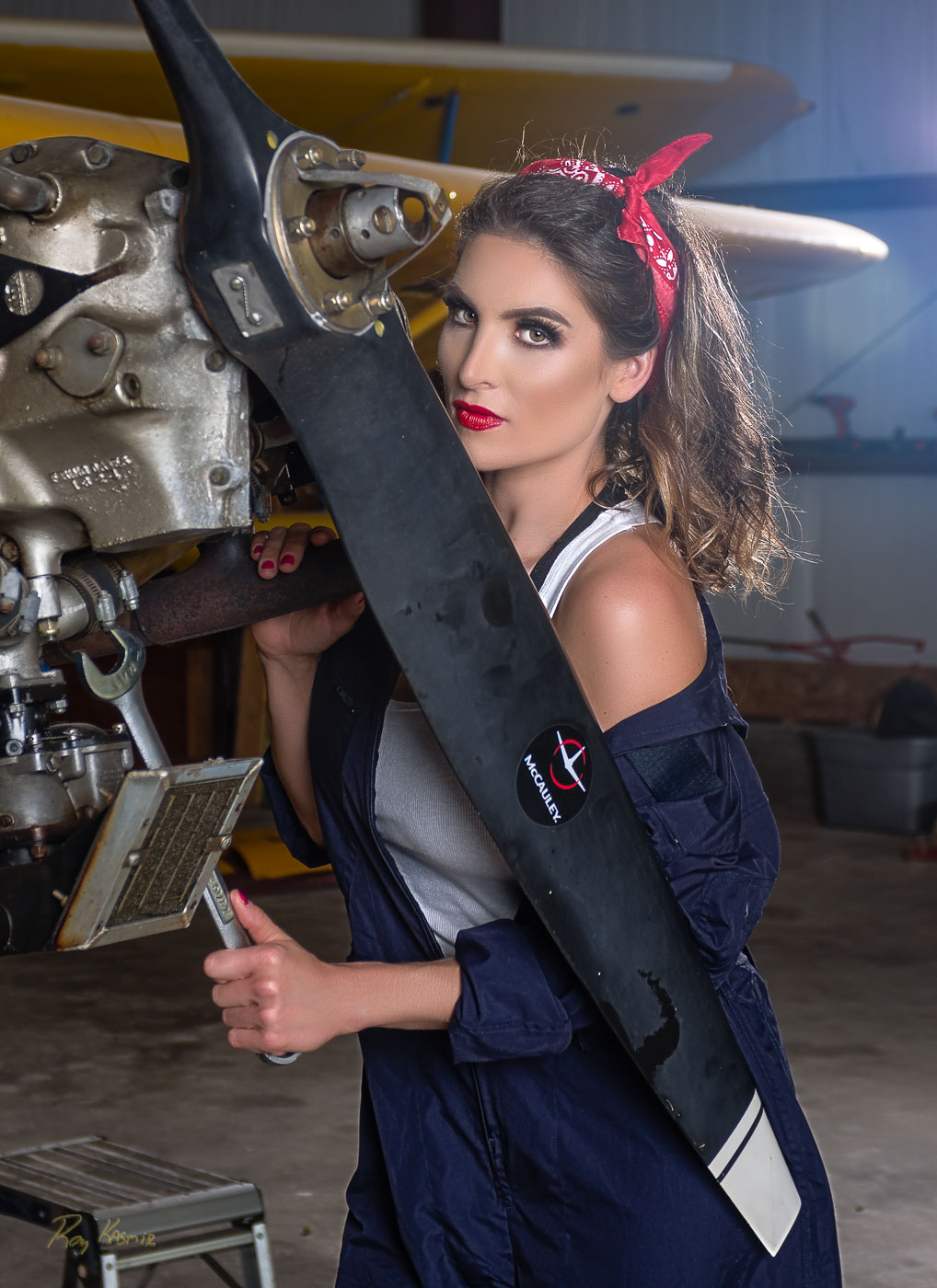 Pin-Up Power: Wings & Wrenches - She’s more than just a pretty face—she’s got grease on her hands and fire in her eyes. Where vintage engines hum and classic style reigns, she’s the heartbeat of the hangar.
